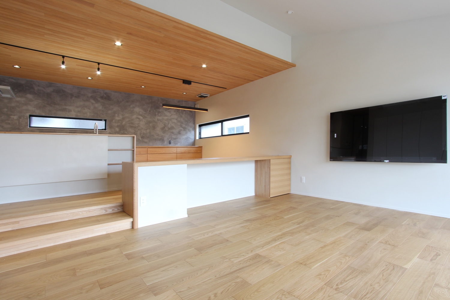 リビングの床を一段下げることで、ほどよいおこもり感が生まれました。