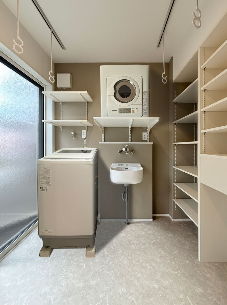 また、洗濯室にはスロップシンクと乾燥機を設置し、