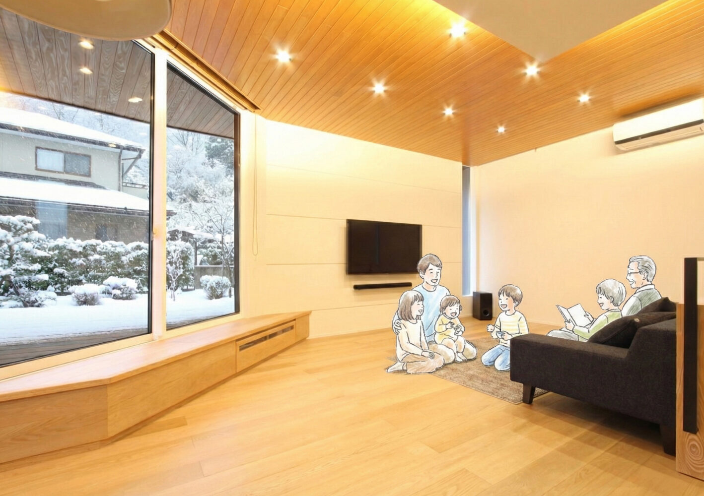 さらに、室内は過乾燥になりにくく、冬場でも適切な湿度を自然に保ちます。加湿器に頼らずとも、肌や喉にやさしい潤いのある空気環境を実現しました。