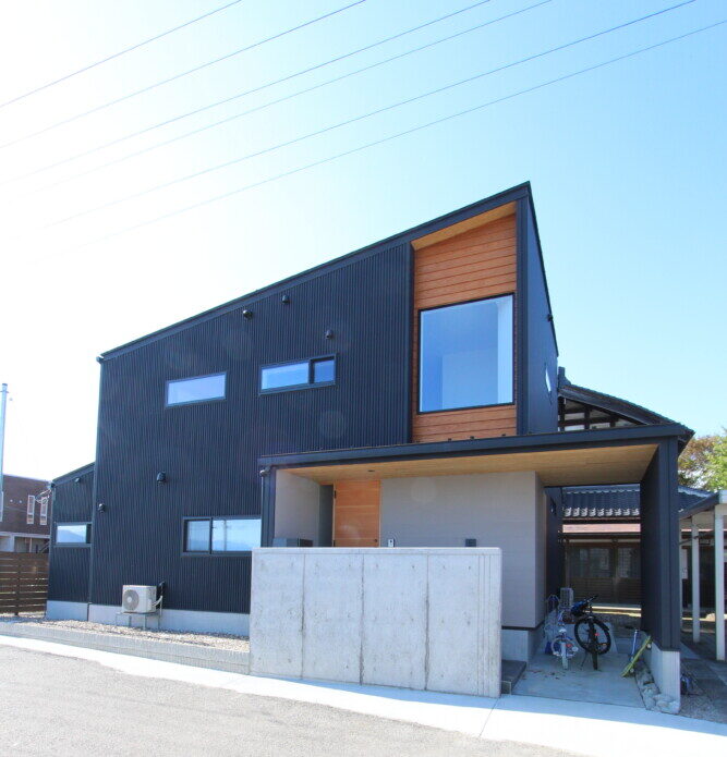 外観は、メンテナンス性に優れたガルバリウム鋼板を採用し、シンプルで飽きのこないモダンなデザインに仕上げました。時代に流されない普遍的な美しさが、小松市の落ち着いた街並みに調和します。
