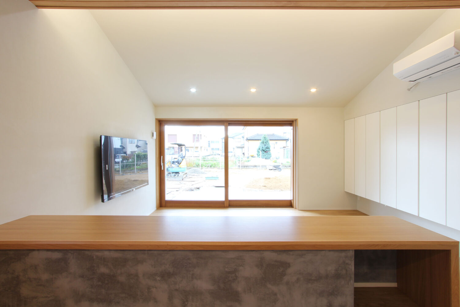 プライバシーはしっかりと確保した、落ち着きあるリビングです。
