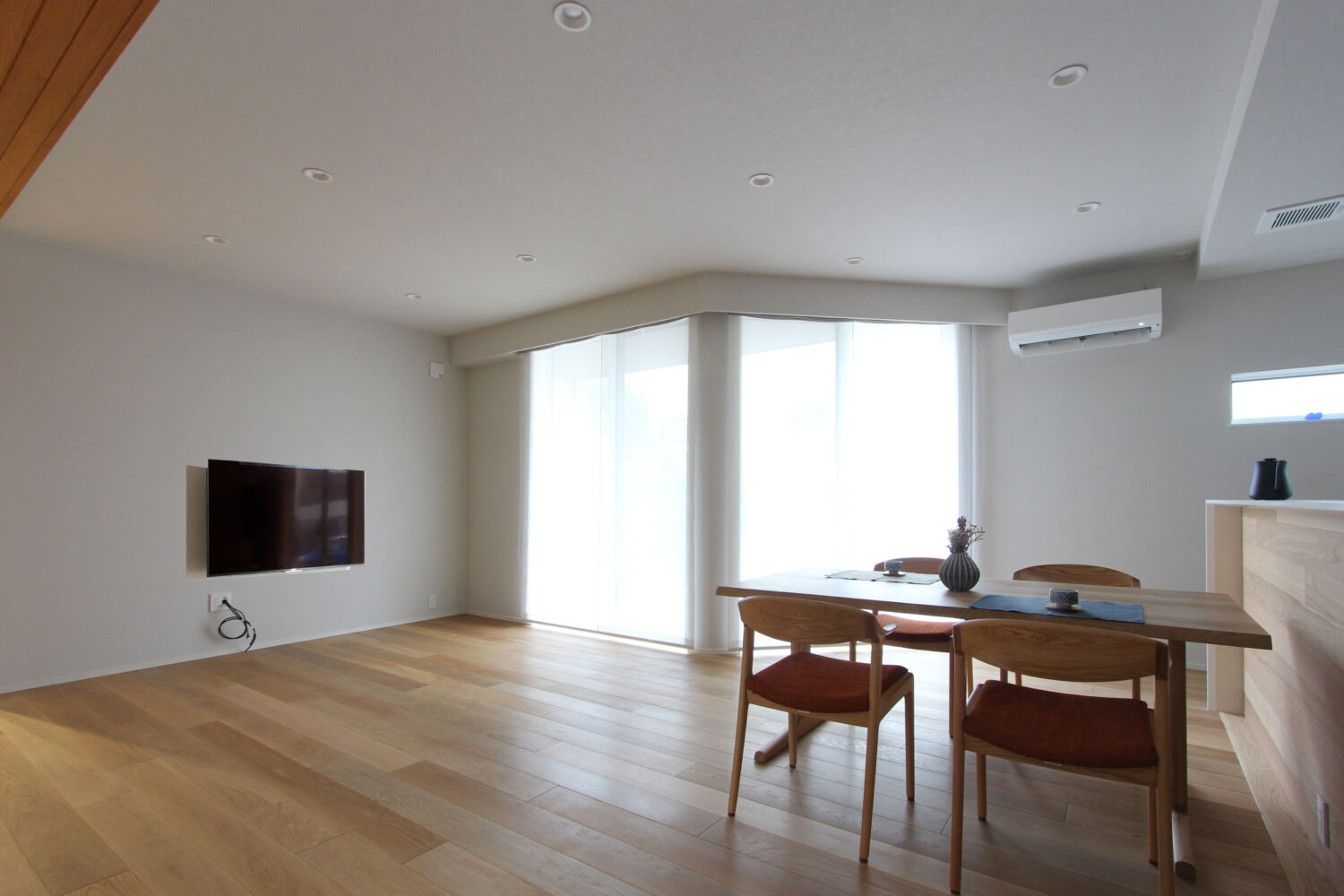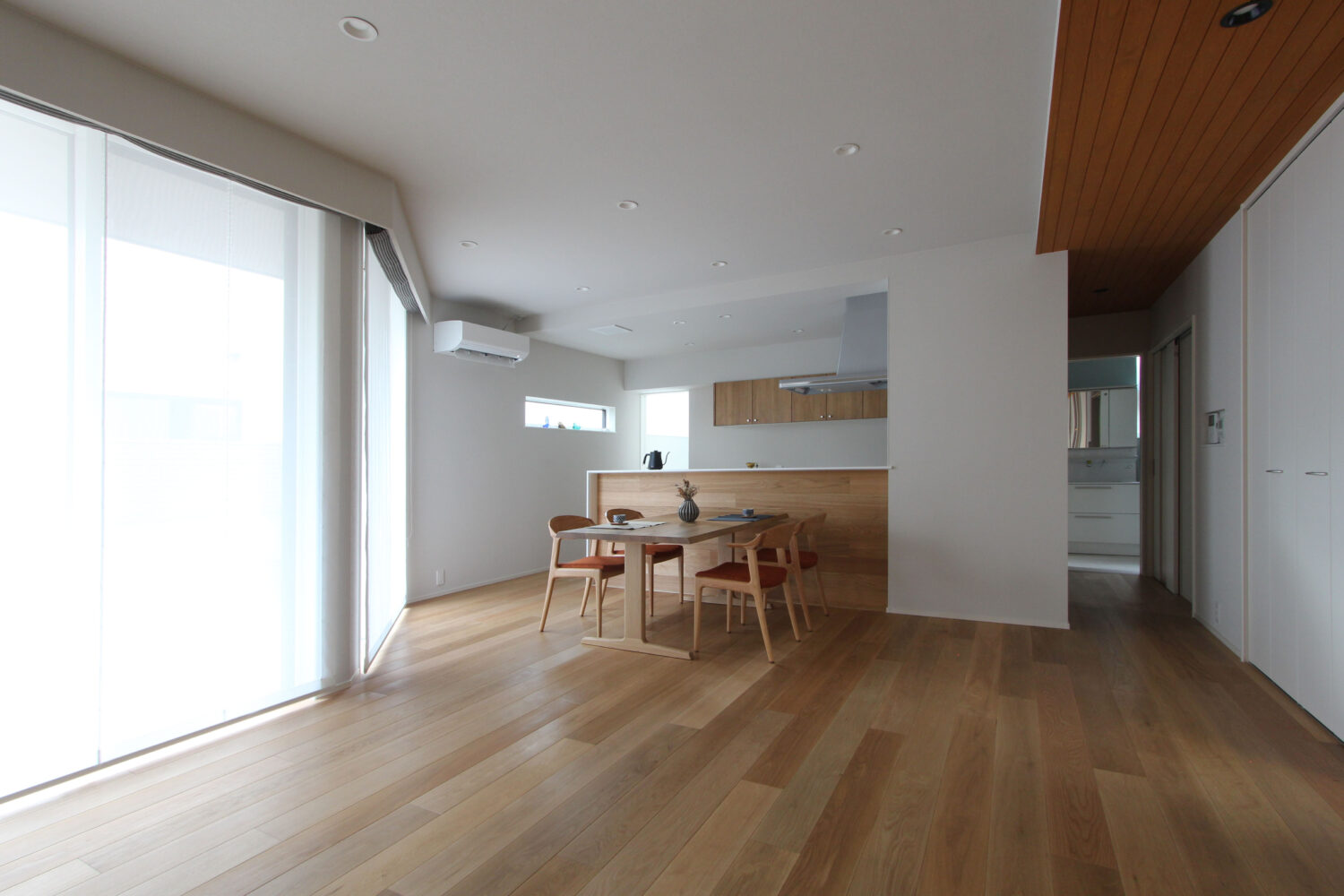 回遊性のある動線に、広いファミリークローゼット、キッチンからつながるサンルーム、ゆとりあるファミリー玄関を配置し、日常の動きをスムーズにしました。
