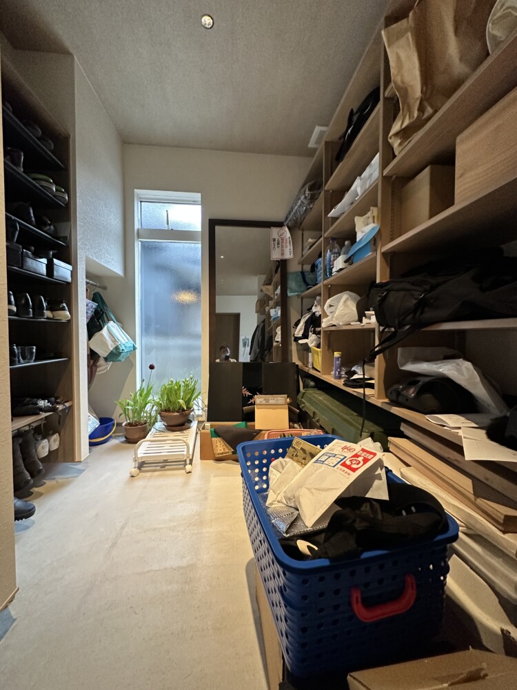 玄関に入ると広がる大きな土間空間には、野球道具などのスポーツ用品や暮らしの道具をたっぷり収納できる設計に。大きな建具を開けるとリビングダイニングと一体化し、日本の民家のような開放的な空間が広がります。