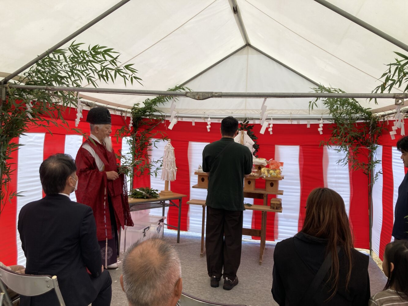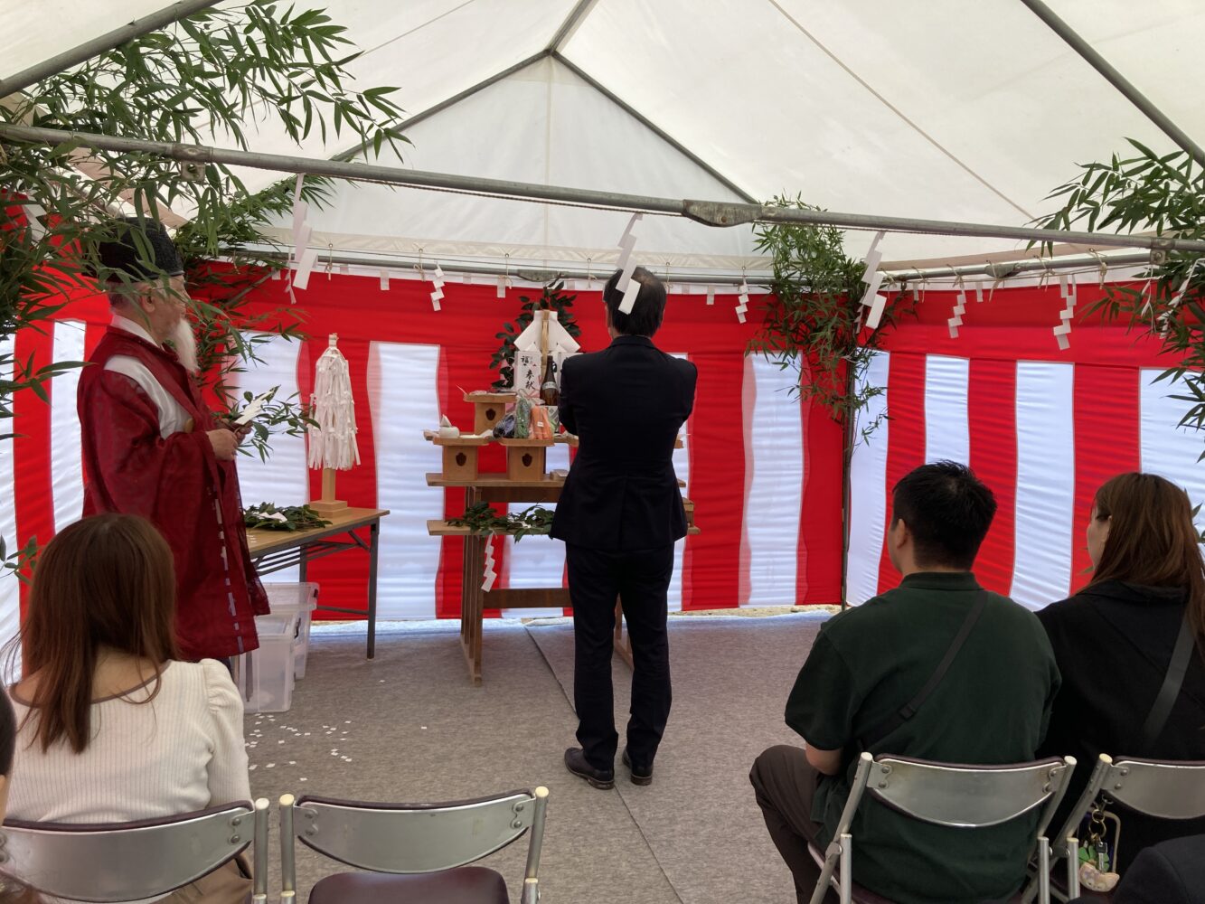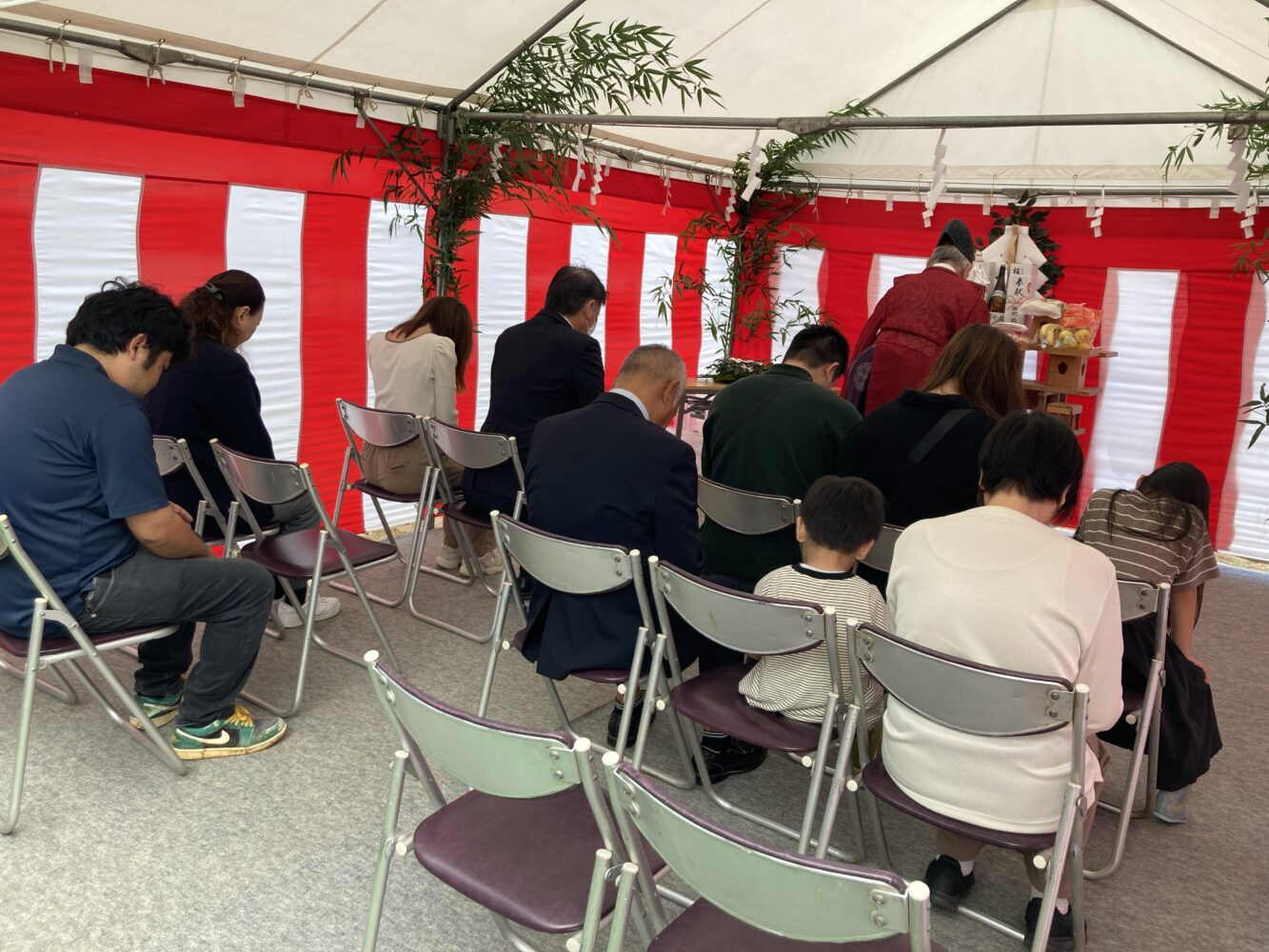 神主様によるお祓いのあと、施主様・弊社代表・社員が玉串を奉奠し、心を込めて祈願しました。