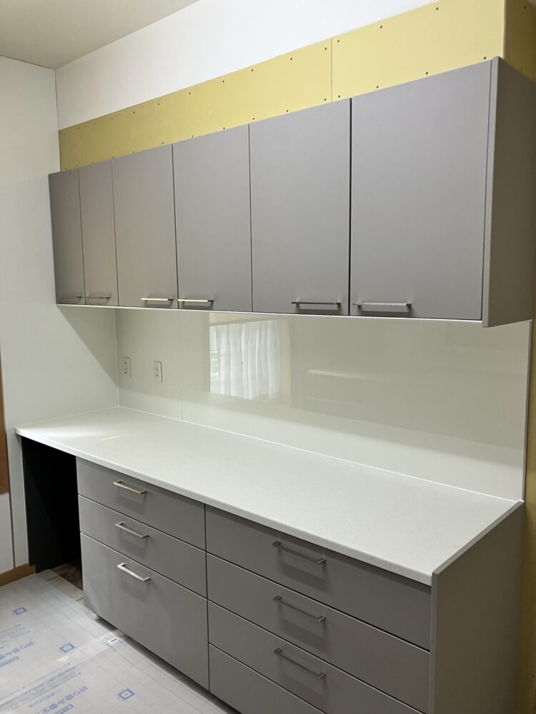 先週、キッチンとカップボードの設置まで無事に完了しましたが、本当に素敵な仕上がりです。