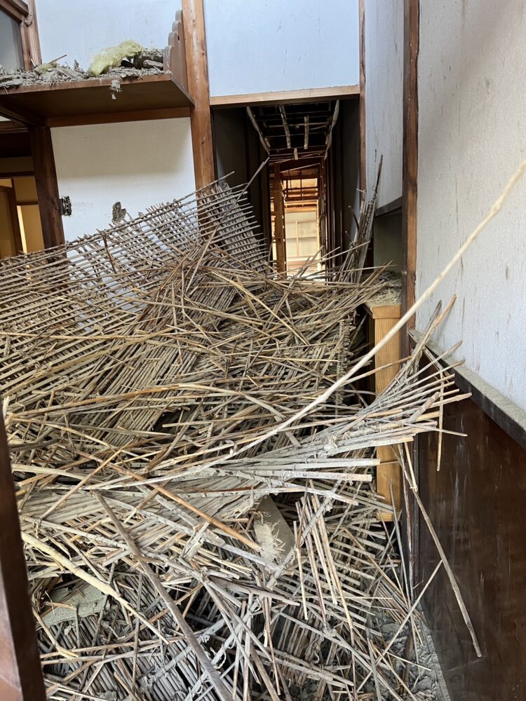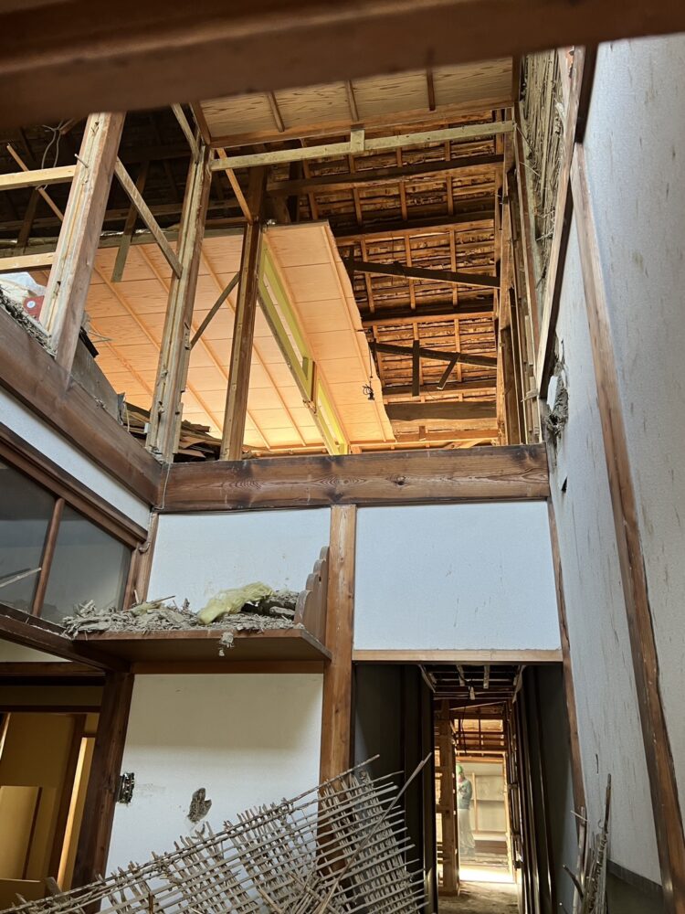 さて、いよいよ初日。いきなり重機で壊していくのかと思っていましたが、内部の土壁や天井などを壊す作業が先にあるのですね。その作業に約一週間ほどかかりました。
